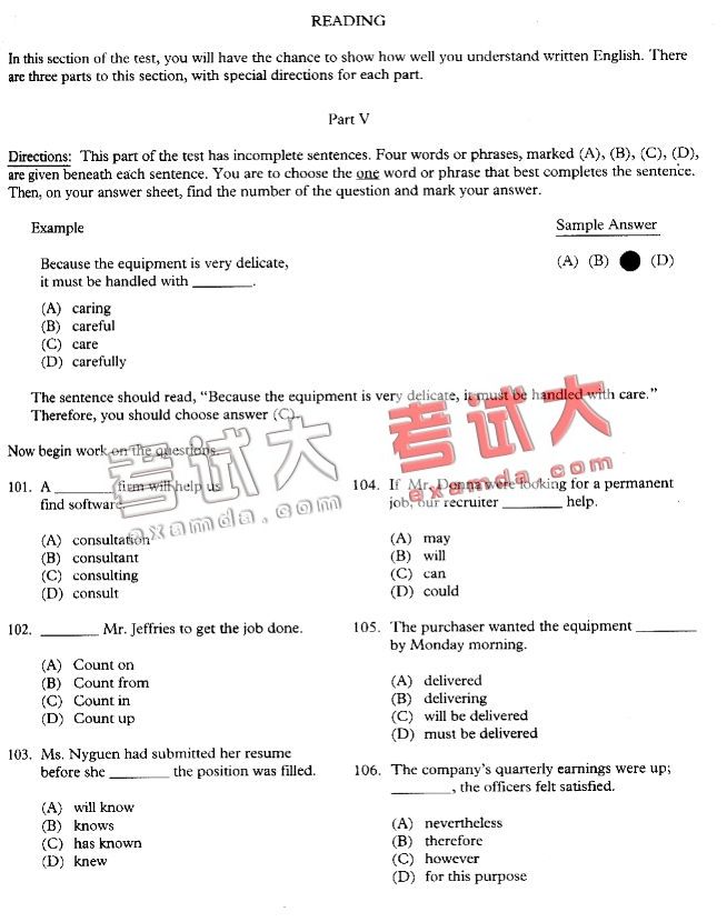 考试大整理托业全真模拟题(三)(20)