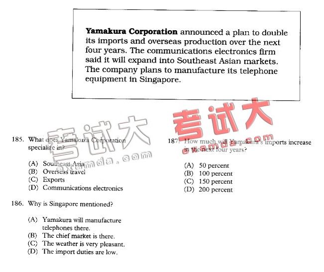 考试大整理托业全真模拟题(一)(33)