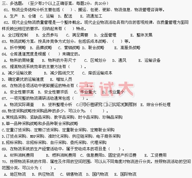 [真题]物流师资格认证考试试卷(上)(3)