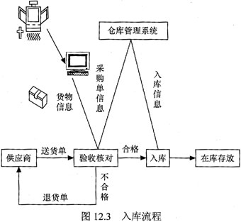 入库作业。由于在卸货区有RFID读写器,因此不需要开包检查里面的货就可以直接进行验收入库。通过与相应的采购单进行核对无误,这批货物就可以很快地上货架存放。