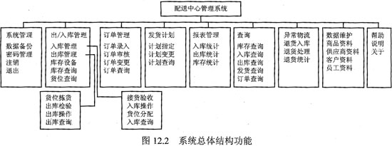 系统的总体功能模块如图12.2所示,主要分为:系统管理、出/入库管理、订单管理、发货计划、报表管理、查询、异常物流、数据维护以及帮助。