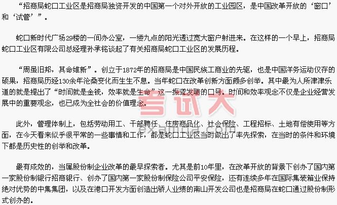 “自招商局蛇口工业区成立以来,在企业管理和改革方面,也进行了诸多探索,历史证明一些探索是正确的,后来成为了中国相关领域实行改革的借鉴。”孙承铭说。