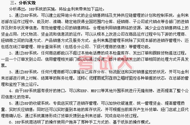 于是金利来DRP系统解决方案就此产生。通过将金利来代理商及代理商所属专柜或专卖店进行业务整合,并与金利来ERP系统一起组建金利来业务网站,达到加快供应链反应速度、提高企业凝聚力和市场洞察力及企业发展力的目的。