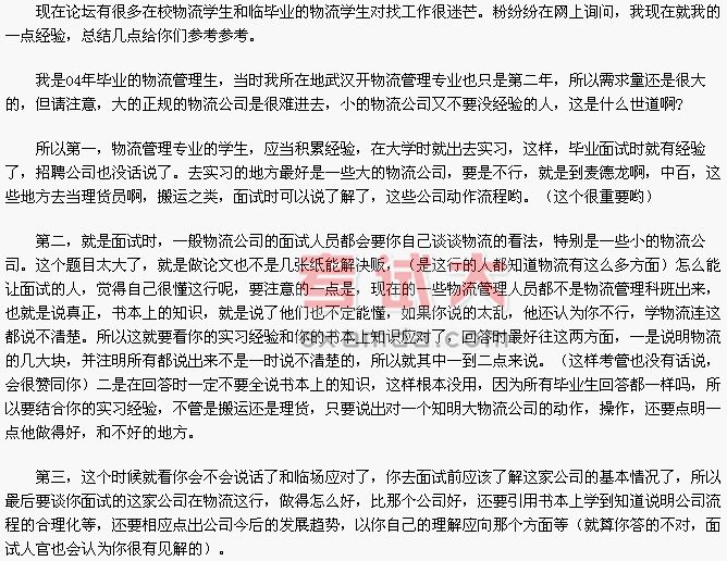 2.不是每一家物流公司面试的问题都是千篇一律的,朋友们平时注意多看报纸,多看一些相关的行业消息,