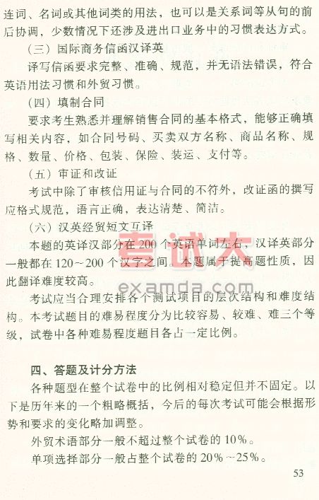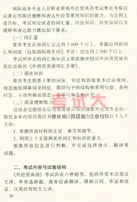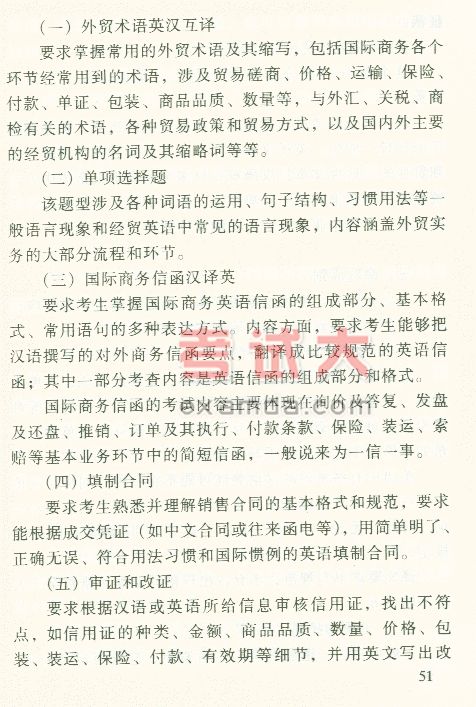 2003年外销员考试大纲:外经贸外语--英语