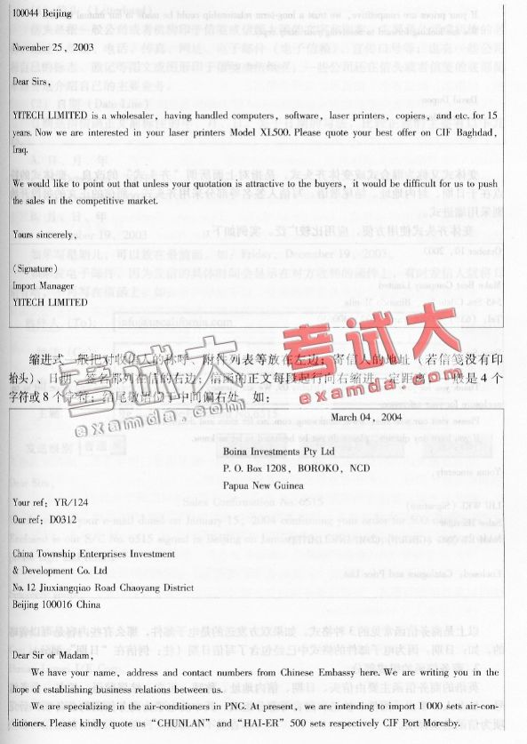 第三章 商务信函汉译英