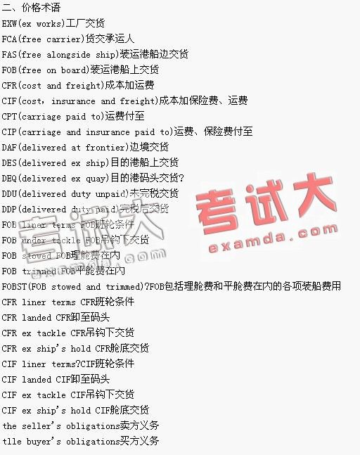 INCOTERMS 2002,International Rules for the Interpretation of Trade Terms《2000年国际贸易术语解释通则》