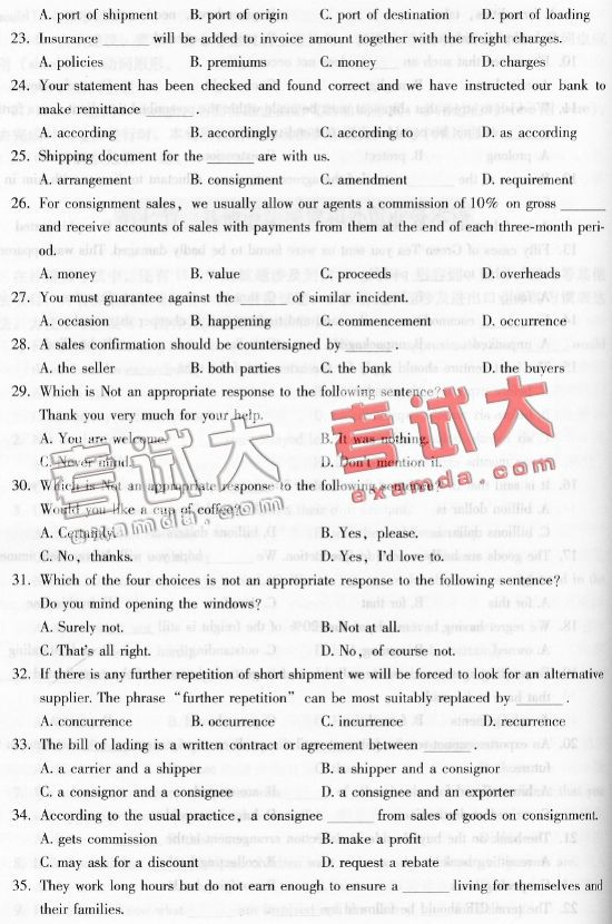 2007年外销员资格考试综合辅导(二)(22)