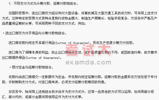 在实务中还可以采用如下相结合的支付方式,旨在减少风险,作到安全收汇。