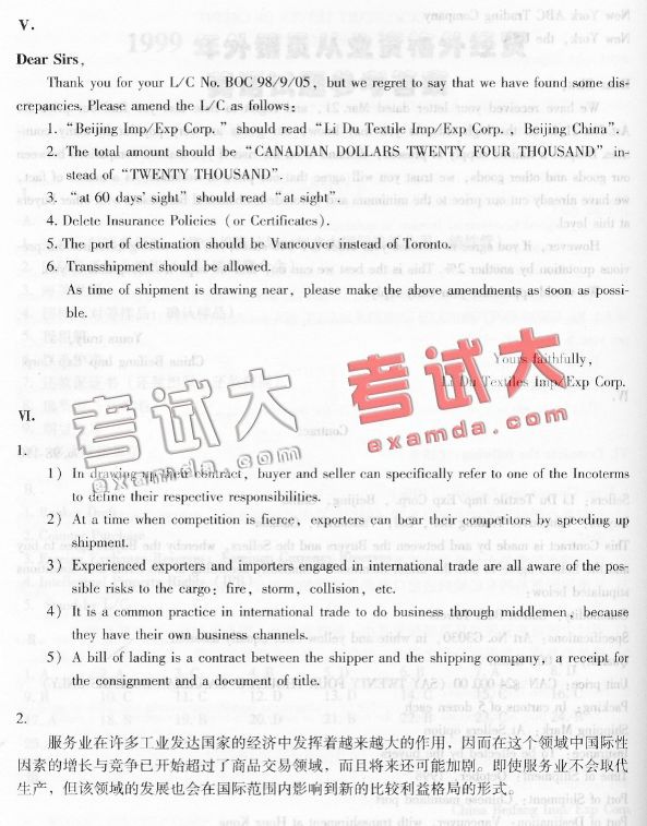 1999年外销员从业资格外经贸英语试题(4)