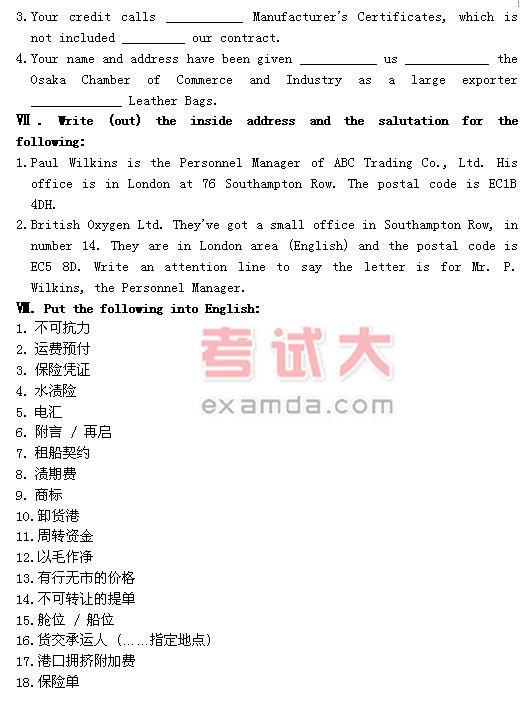 外贸英语函电习题(3)