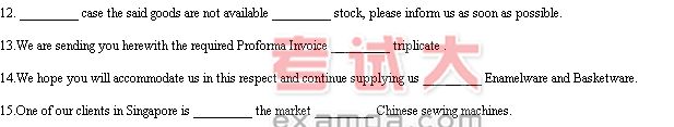 3.We are _________ receipt _________ your letter of Sept.19,enclosing catalogues and price list for bicycles and sewing machines.