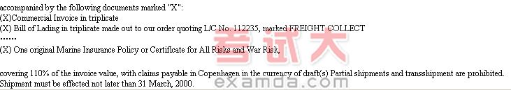 No. PO5476 from Copenhagen to China port. Drafts to be drawn at sight on our bank and