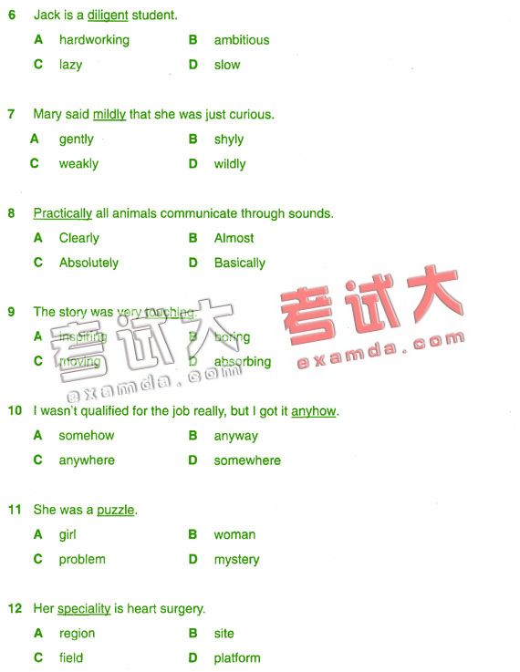 6 A 7 A 8 B 9 C 10 B