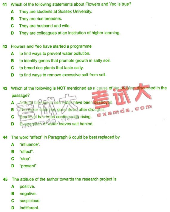 41 D 42 B 43 C 44 A 45 A