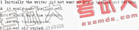 One day a friend asked my.wife Jill if I Wanted a hearing aid.“He certainly does.”replied Jill.After hearing about a remarkable new product.Jill finally got up the nerve to ask me if l’d ever thought about getting a hearing aid.“No way,”I said.“It would make me look 20 years older.” “No, no, ”she replied.“This is entirely different.It’s Crystal Ear!”来源:考试大