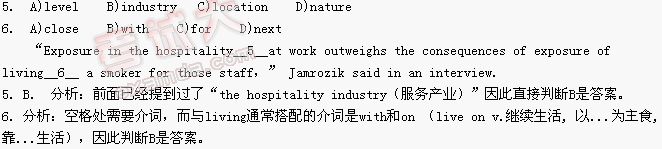 3. C。分析:被选项中出现文章核心词—smoking, 而且与该空格搭配的前面的结构是“间接的”,因此判断C是答案。来源:考试大