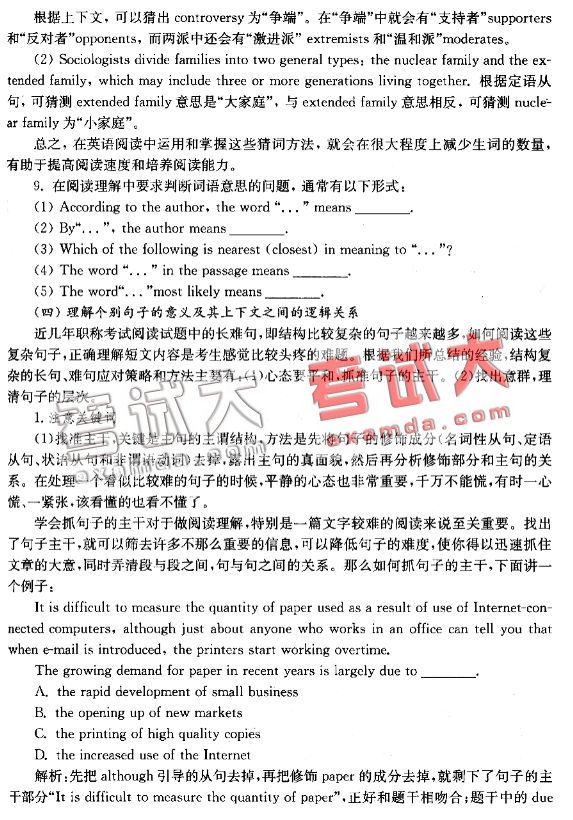 2007职称英语(综合)类阅读理解应试窍门(8)