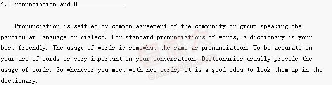 下面的一篇短文共分五段,每段说明一个主题。其主题可以用一个或几个单词表示出来。该单词或词组是不完整的,即有一个词是空出来的,但其第一个(或前几个)字母已经给出,请将蓁的字母补全,使之成为一个完整的单词。