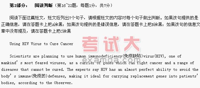 A team at the California-based Salk Institute, one of the world’s leading research centers on biological sciences, has created a special new breed of HIV and has started negotiations with the U>S> Food and Drug Administration(FDA)to begin clinical gene therapy(治疗) trials this year. The first trials are expected to involve patients suffering from cancers that cannot be cured by surgery although project leader Professor Inder Verma said the HIV technique would have” far wider applications”.