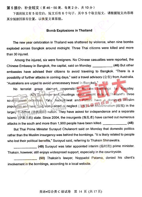 2008年职称英语综合类(C级)真题(14)