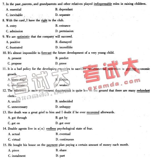 优惠券领取后72小时内有效,10万种最新考研考试考证类电子打印资料任你选。涵盖全国500余所院校考研专业课、200多种职业资格考试、1100多种经典教材,产品类型包含电子书、题库、全套资料以及视频,无论您是考研复习、考证刷题,还是考前冲刺等,不同类型的产品可满足您学习上的不同需求。 ...
