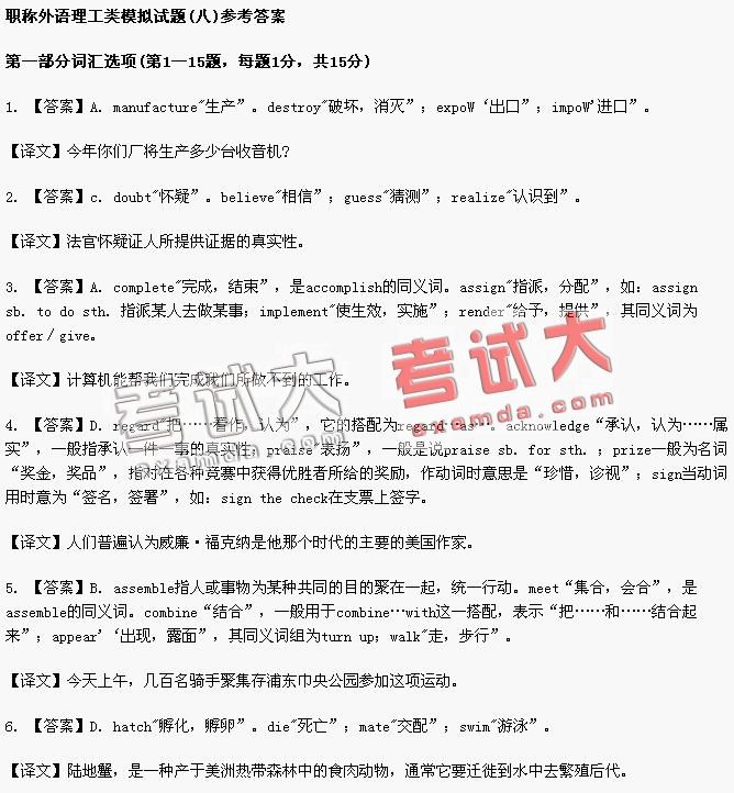 全国职称英语考试理工类模拟试题(八)答案