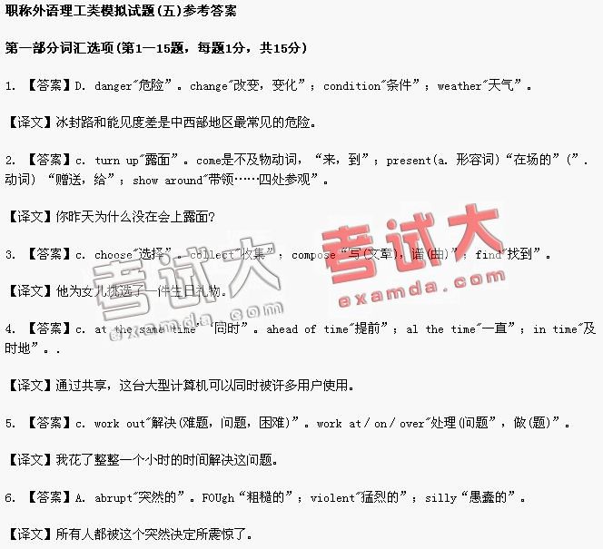 全国职称英语考试理工类模拟试题(五)答案