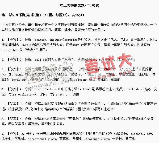 全国职称英语考试理工类模拟试题(二)答案