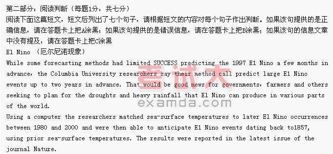 “This will probably convince others to search around more for even better methods.”said Weare.He added that the new method“makes it possible to predict El Nino at 1ong lead times.” Other models also use sea-surface temperatures, but they have not looked as far back because they need other data,which is only available for recent decades,Weare said.