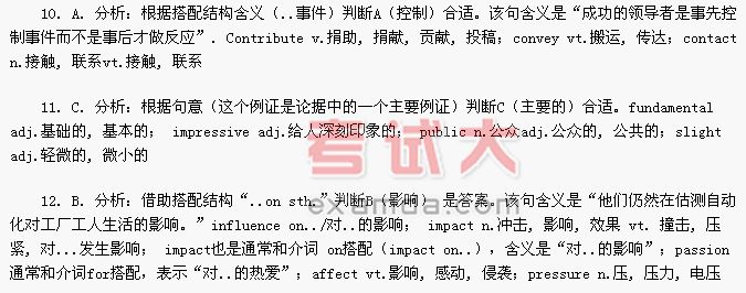 14. 分析:D. 借助句子的句意(这位部长..委员会. )和被选项中的核心词含义判断D(charge n.主管, 掌管)合适。on the verge of adv.接近于, 濒临于;on the basis of prep.以...为基础; at the cost of adv.以...为代价