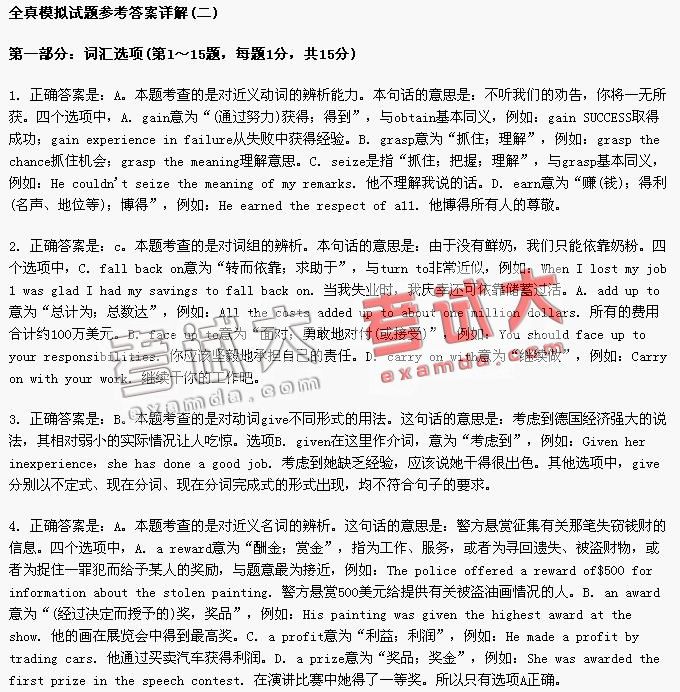 考试大:2007职称英语(综合)类全真模拟试题二答案