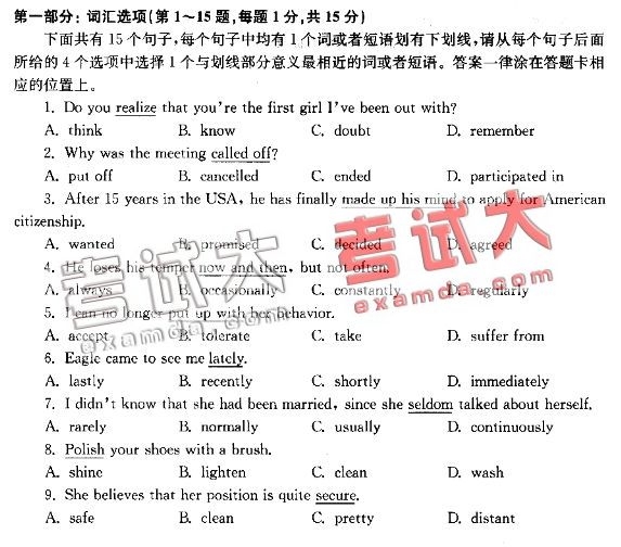 考试大:2007职称英语(综合)类全真模拟试题八