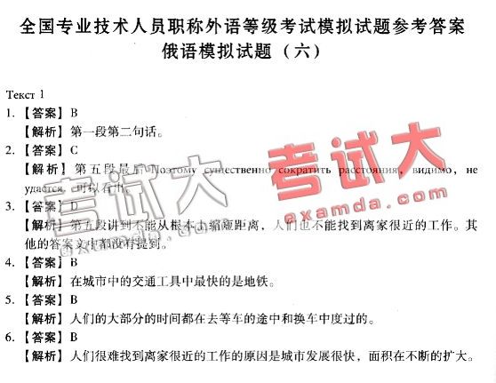 考试大整理:07年职称俄语全真模拟试题(六)答案