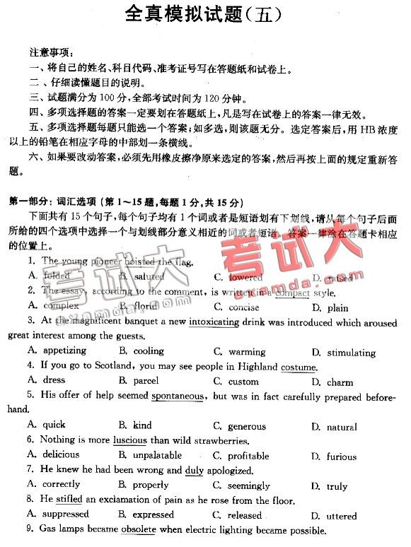 职称英语模拟试题(五)