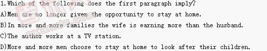 I was a stay-at-home father for eight years, so his declaration made me bristle.It implied that our family’s choice could only have been correct if 1 was a “better” parent than my wife.来源:考试大