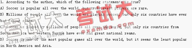 Soccer is played by millions of people all over the world, but there have only been few players who were truly great. How did these players get that way - was it through training and practice, or are great players "born, not made"? First, these players came from places that have had famous stars in the past - players that a young boy can look up to and try to imitate. In the history of soccer, only six countries have ever won the World Cup - three from South America and three from western Europe. There has never been a great national team - or a really great player - from North America or from Asia. Second, these players have all had years of practice in the game. Alfredo Di Stefano was the son of a soccer player, as was Pele. Most players begin playing the game at the age of three or four.