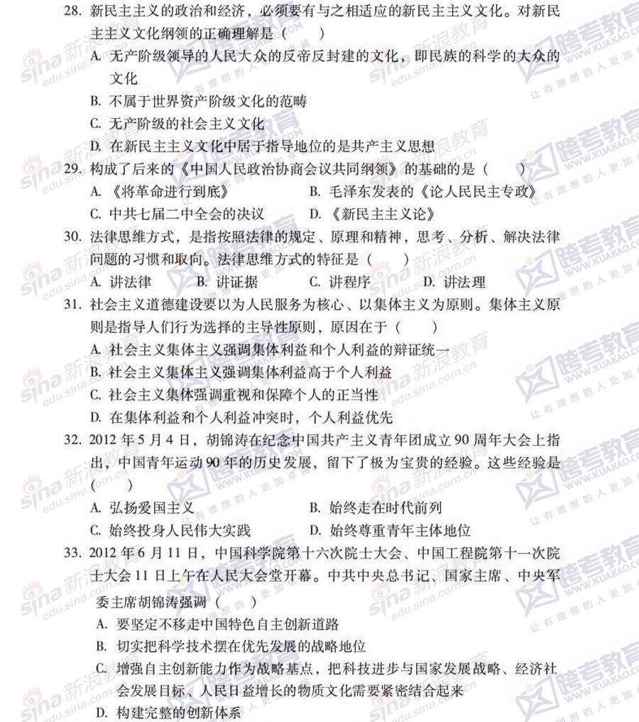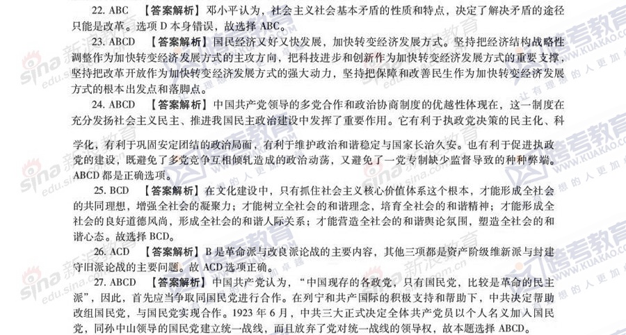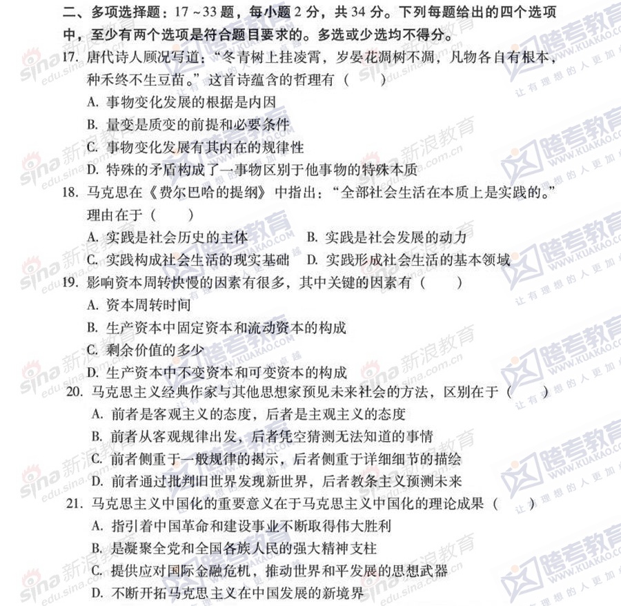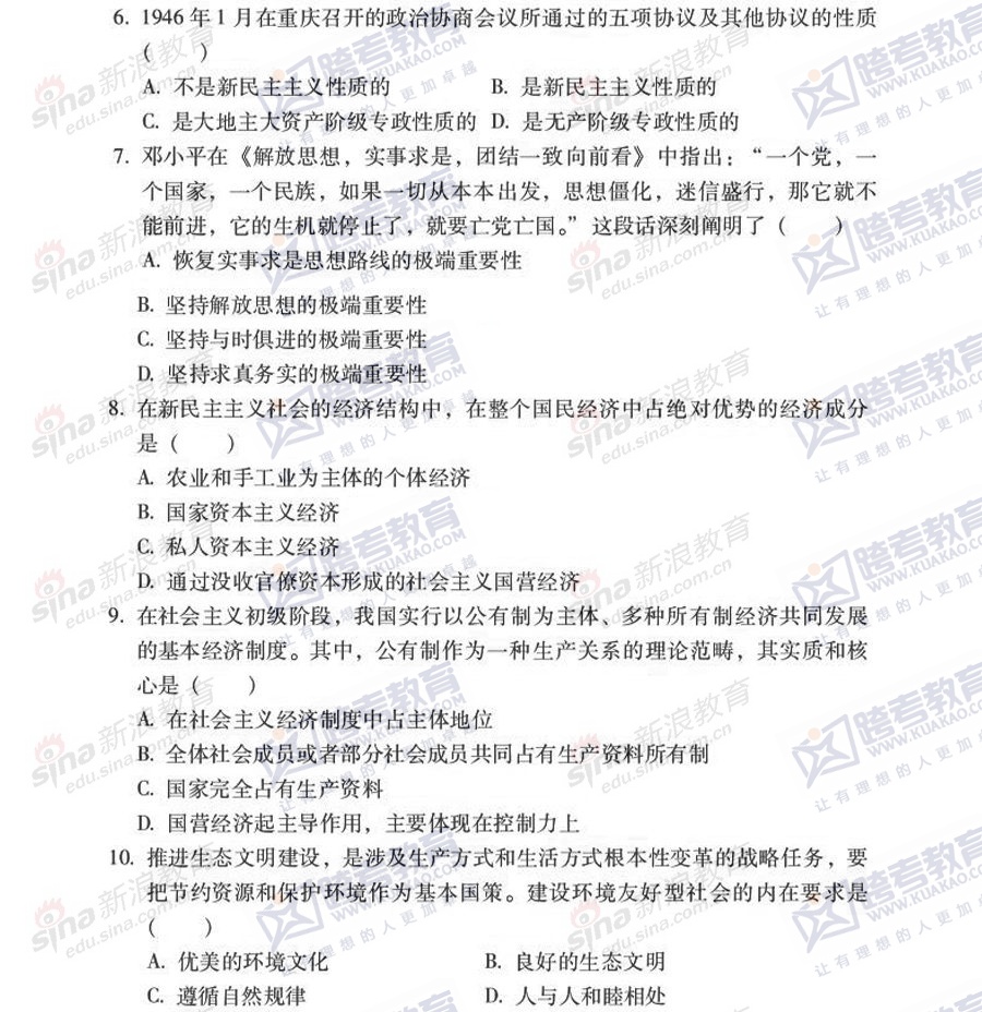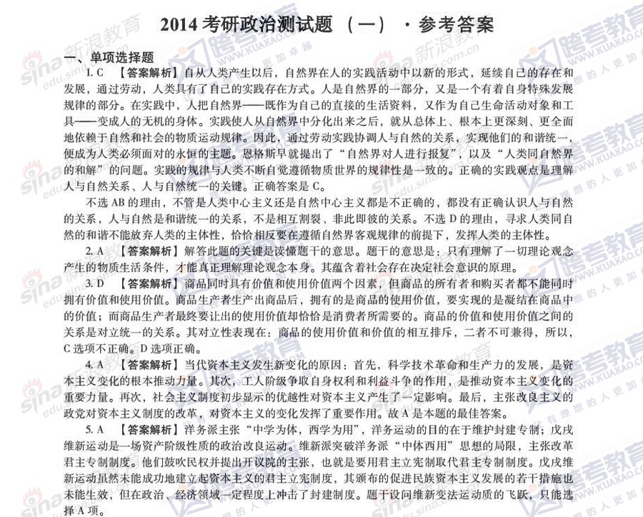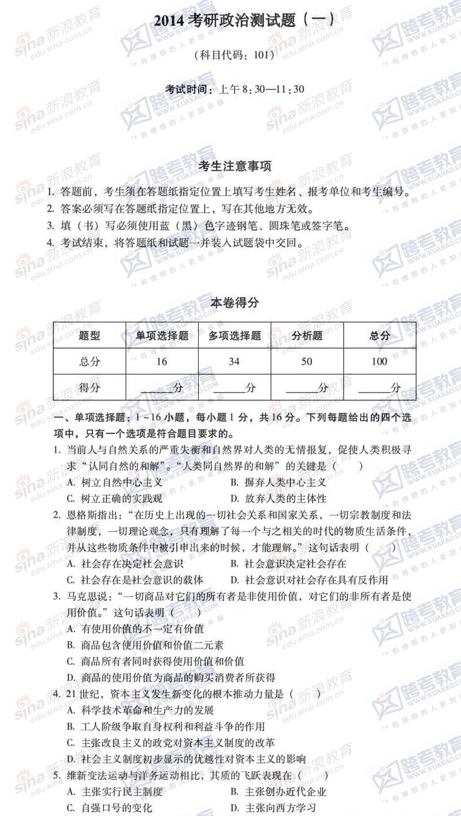 跨考教育2014年考研《政治》冲刺模拟试题及参考答案(一)