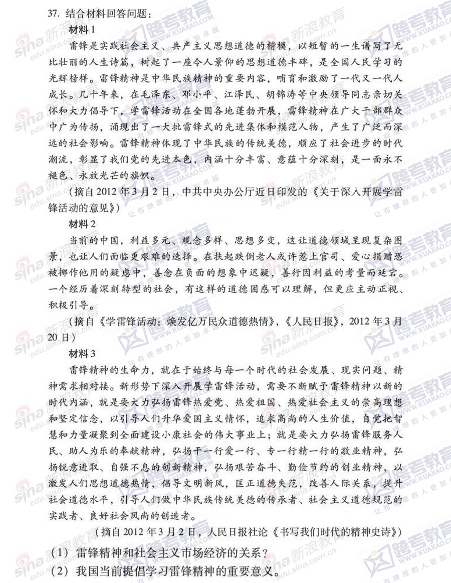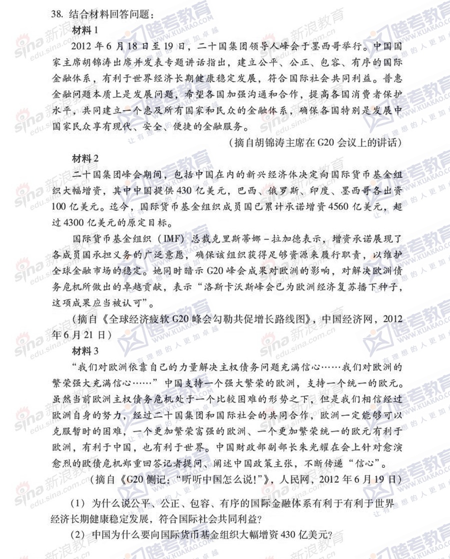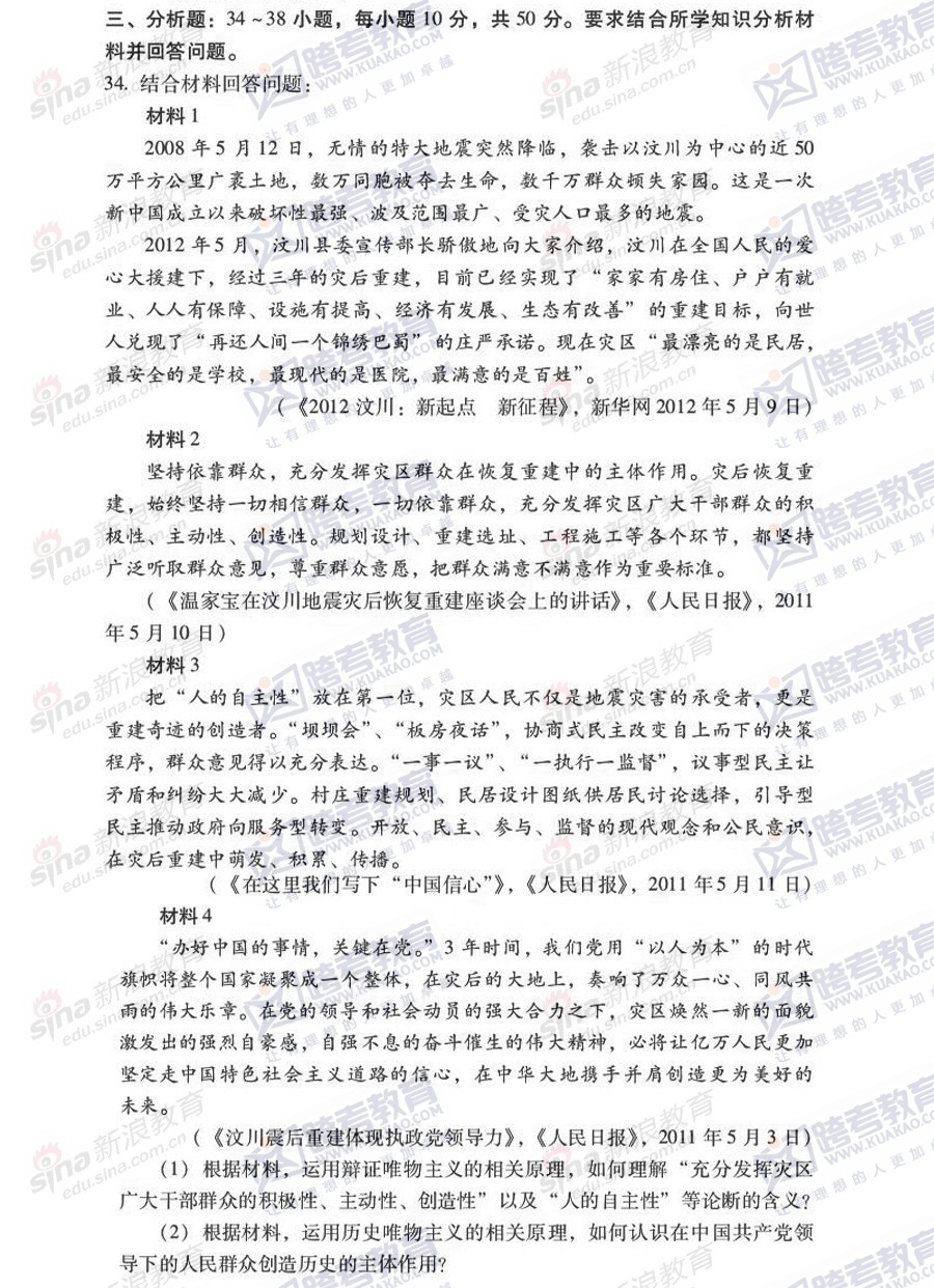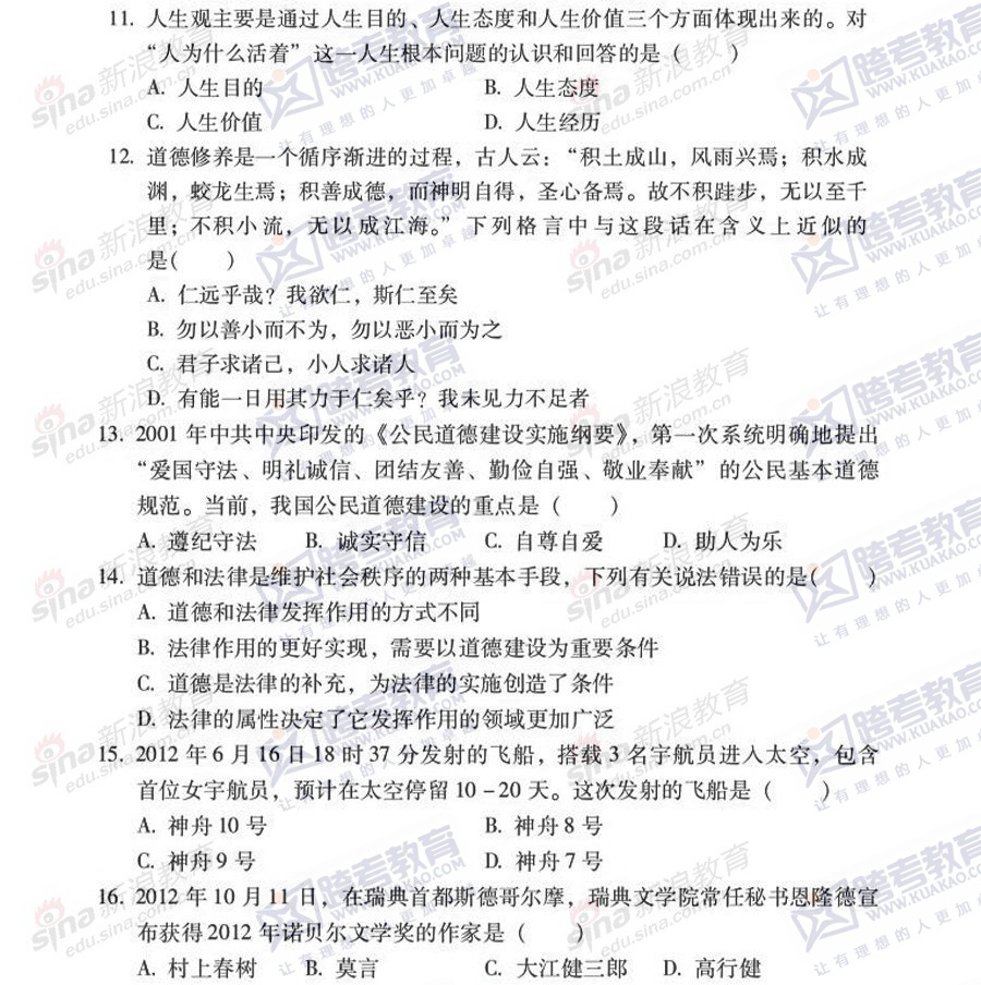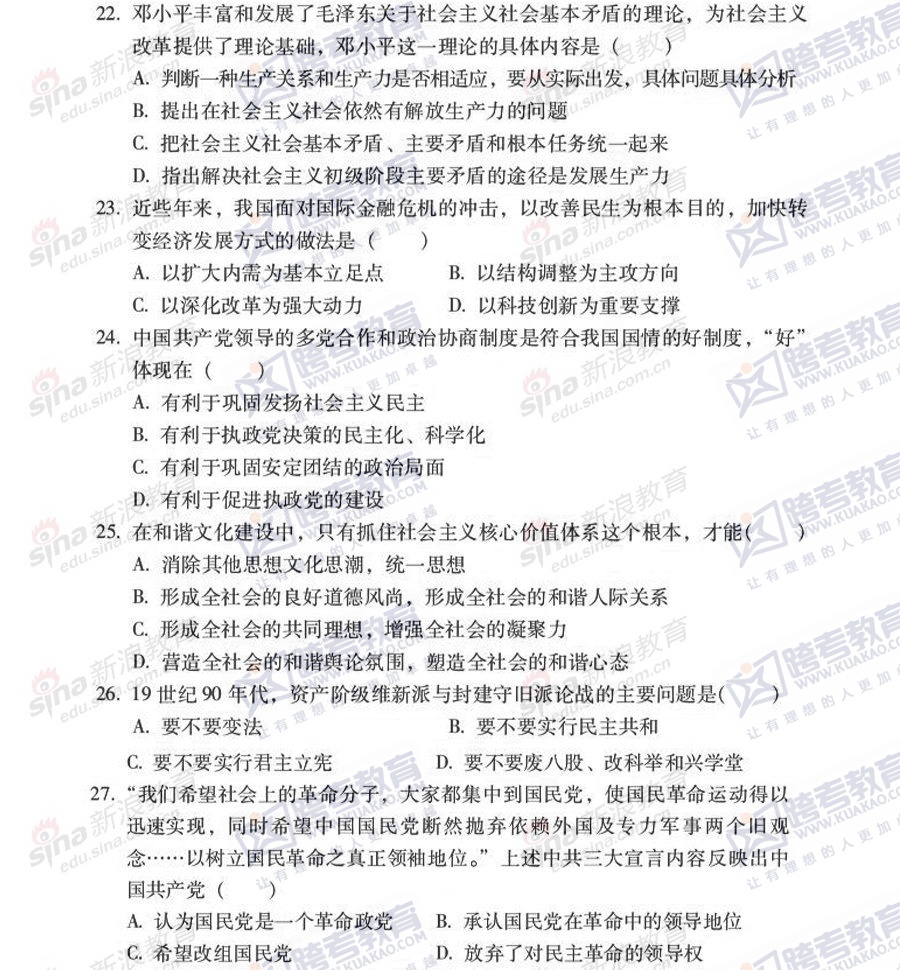 跨考教育2014年考研《政治》冲刺模拟试题及参考答案(一)