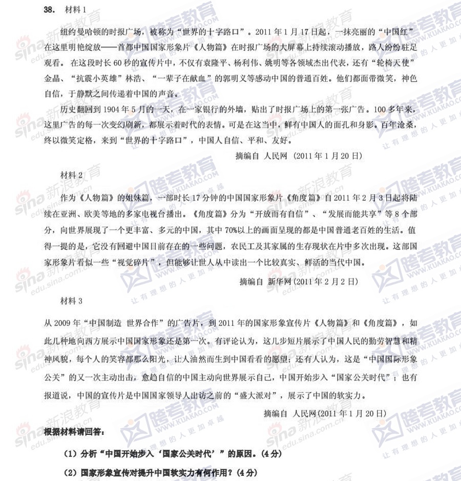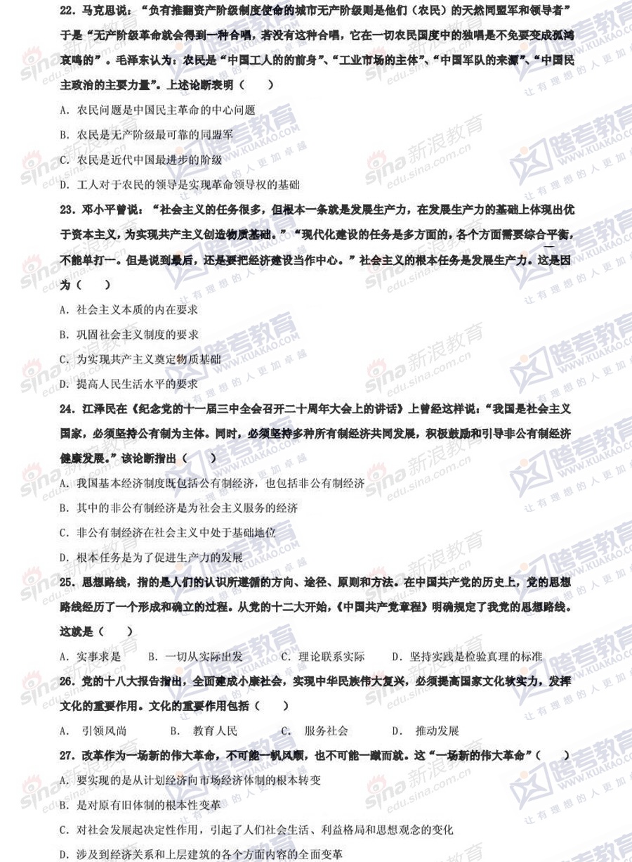 跨考教育2014年考研《政治》冲刺模拟试题及参考答案(三)