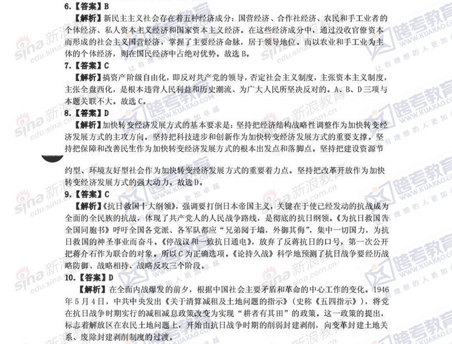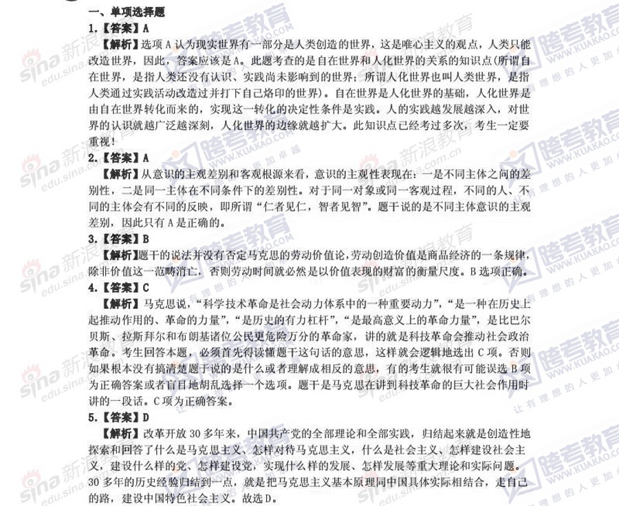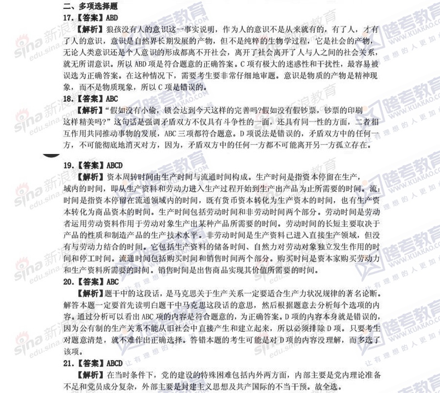 跨考教育2014年考研《政治》冲刺模拟试题及参考答案(五)