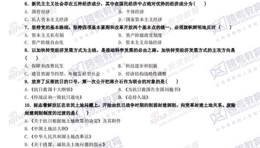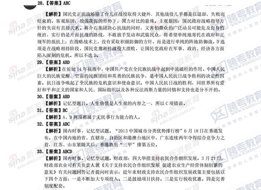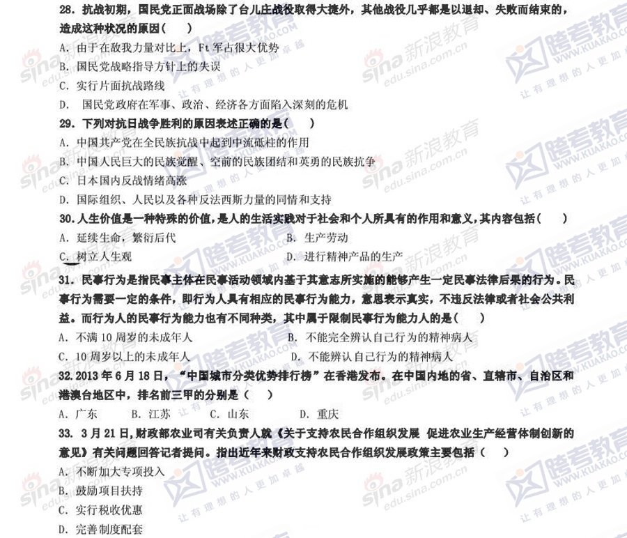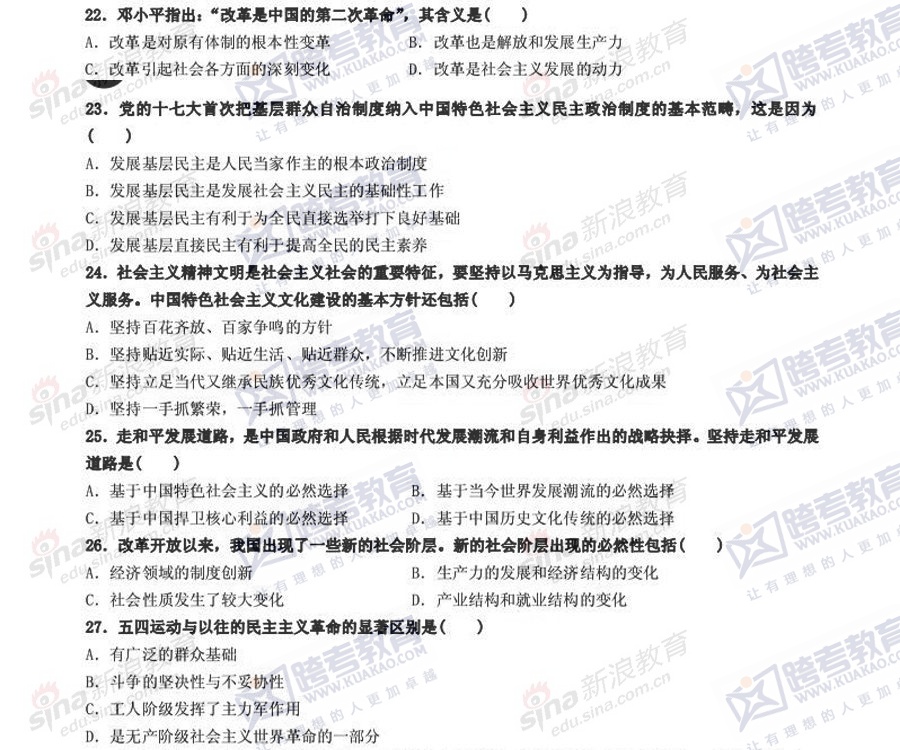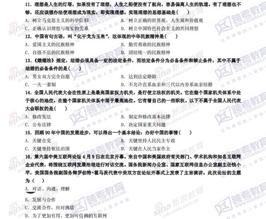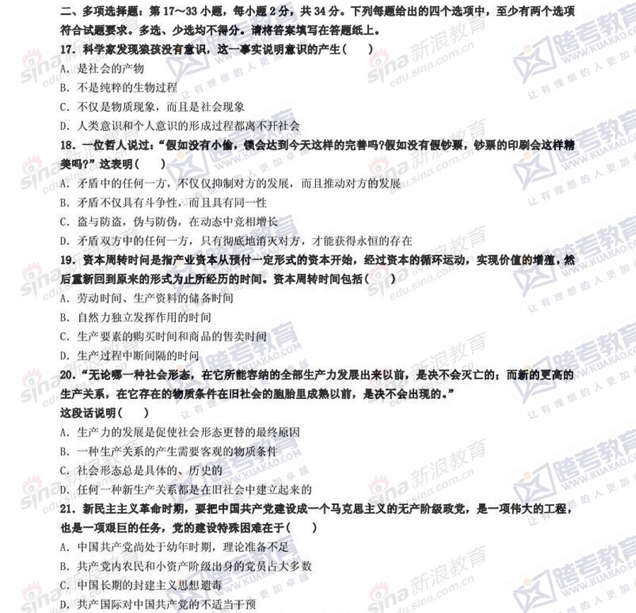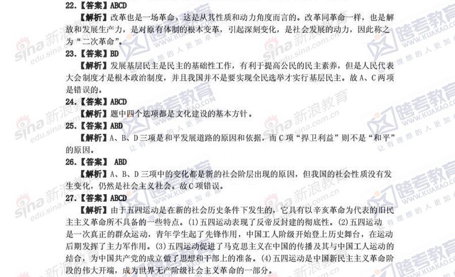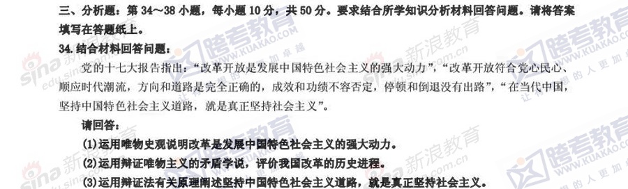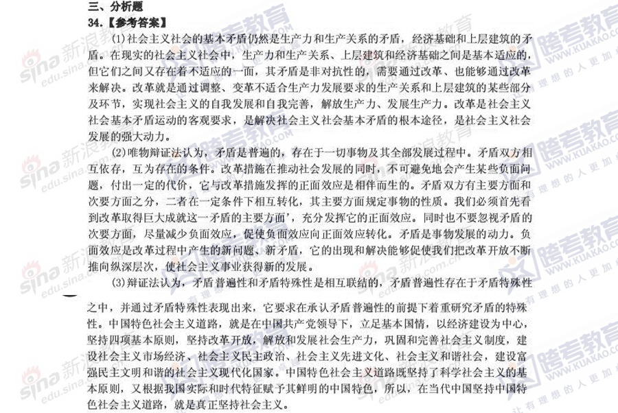 跨考教育2014年考研《政治》冲刺模拟试题及参考答案(三)
