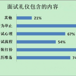 从这个表格中发现,面试礼仪中包含的内容是多方面的,其中94%的人认为言语表情和行为举止是重要的,其次就是着装打扮了,有88%的人认为重要;其他的占得分量稍微少一些,如面试心理是67%,面试流程占54%,简历准备占74 ...