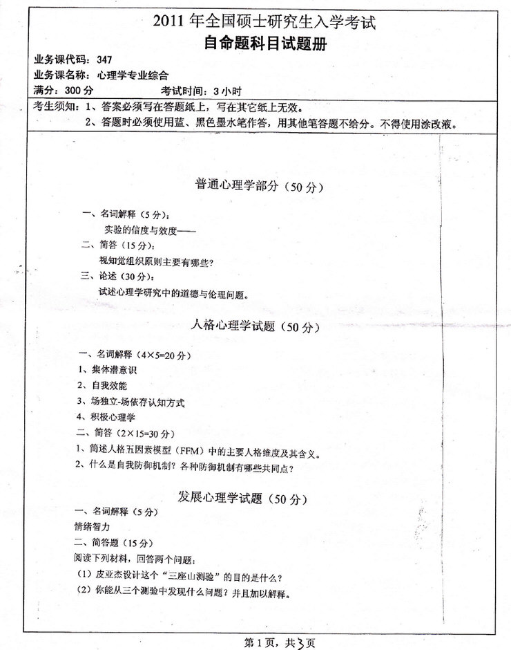 同等学力 本站小编 免费考研网 2016-08-162012年陕西师范大学心理学院347应用心理专业综合真题(回忆版)