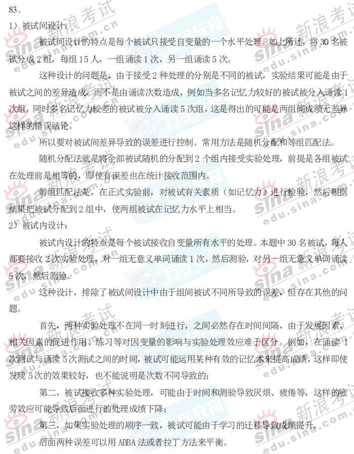 2009年全国硕士研究生入学统一考试心理学专业基础综合考试模拟卷一(2)