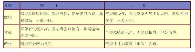辨证要点:辨虚实:实喘起病骤急,呼吸有力、深长有余,胸满气粗,气息急促,声高息涌,膨膨然若气不能容,