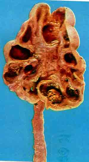 2.切面见肾盂肾盏扩张成囊状