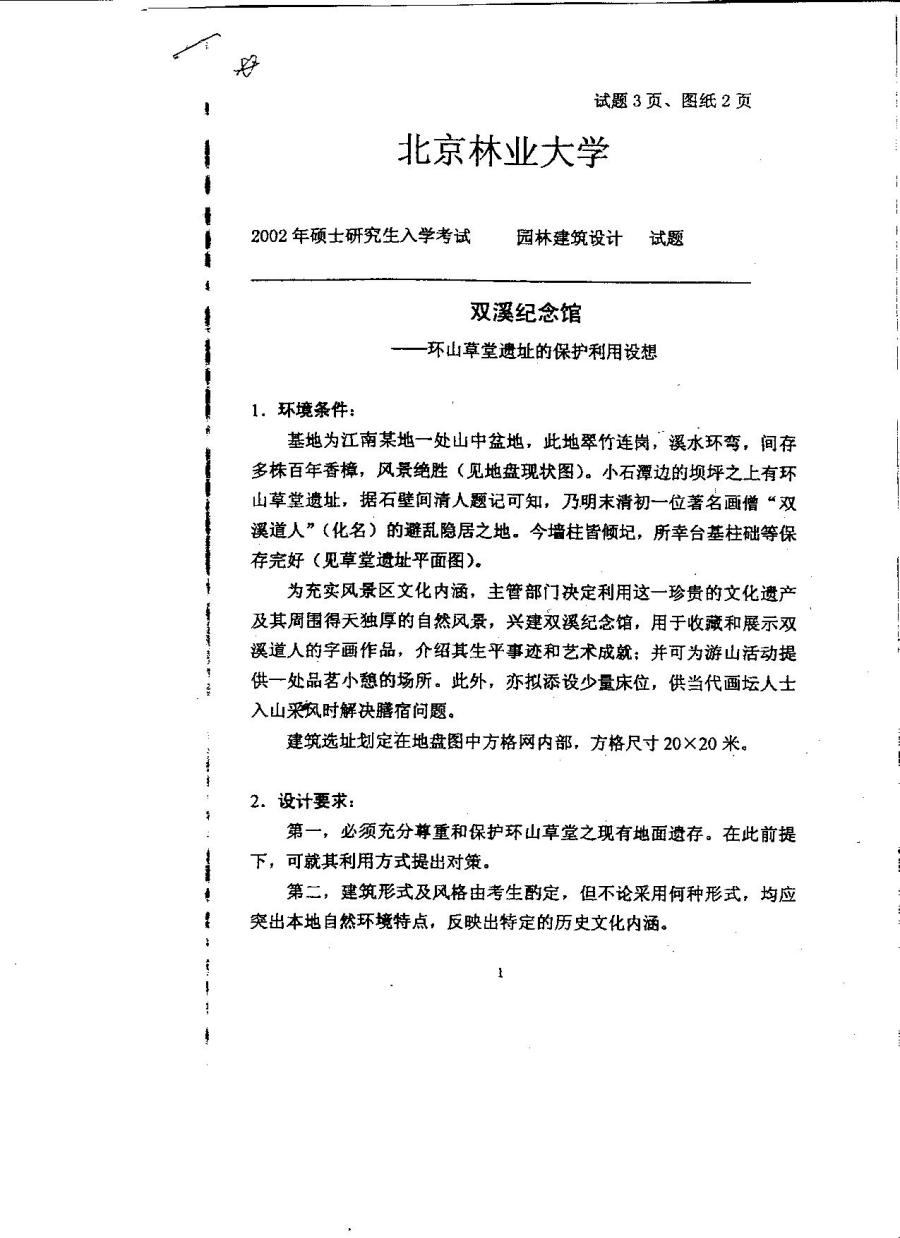• 北京林业大学风景园林硕士考研真题系列-建筑快题