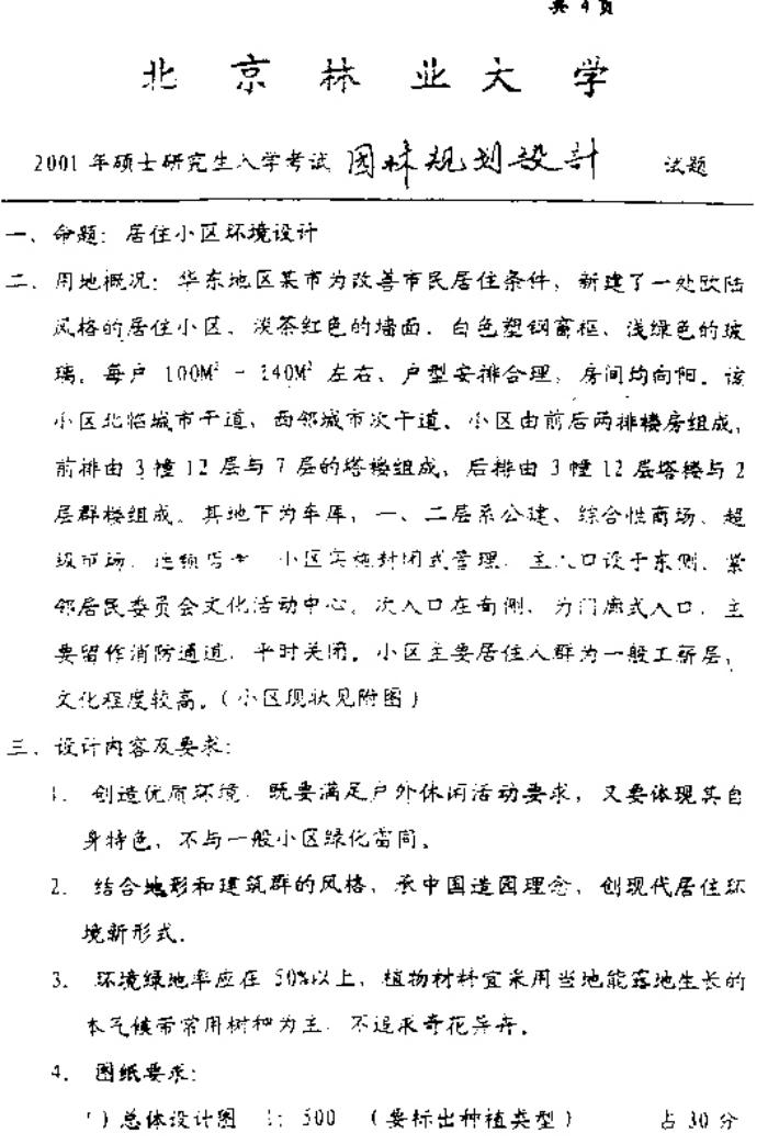 北京林业大学风景园林硕士考研真题系列-园林规划设计真题(23)