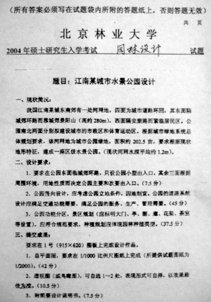 北京林业大学风景园林硕士考研真题系列-园林规划设计真题(26)